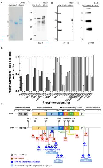 2.3.1. Phosphorylation Characterization of E. coli-Expressed Tau with GSK3β Co-Expression