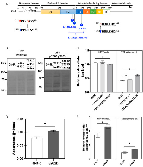 2.5.1. Ser262 Pseudo-Phosphorylation Promotes Tau Secretion