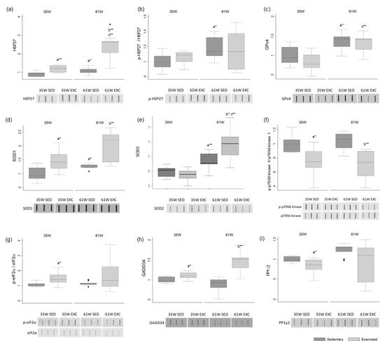 - Torma, F.; Koltai, E.; Nagy, E.; Ziaaldini, M.M.; Posa, A.; Koch, L.G.; Britton, S.L.; Boldogh, I.; Radak, Z. Exercise Increases Markers of Spermatogenesis in Rats Selectively Bred for Low Running Capacity. PLoS ONE 2014, 9, e114075. [Google Scholar] [CrossRef]