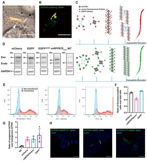 - Chang, C.C.; Keppeke, G.D.; Sung, L.Y.; Liu, J.L. CTPS forms the cytoophidium in zebrafish. Exp. Cell Res. 2021, 405, 112684. [Google Scholar] [CrossRef]