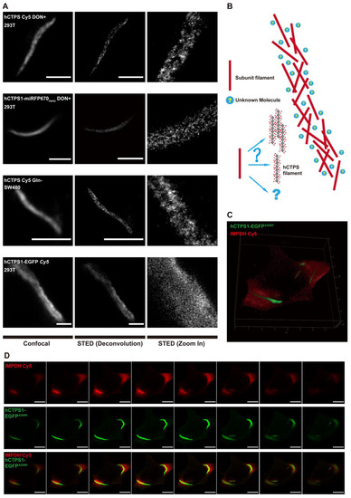 2.3. The Reticular Structure of the hCTPS1 Cytoophidium and Its Localization with hIMPDH2