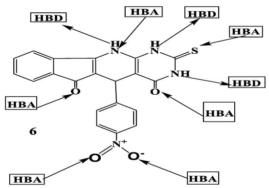 Hydrogen bond donor (HBD) and hydrogen bond acceptor (HBA) sites of compound 6H.