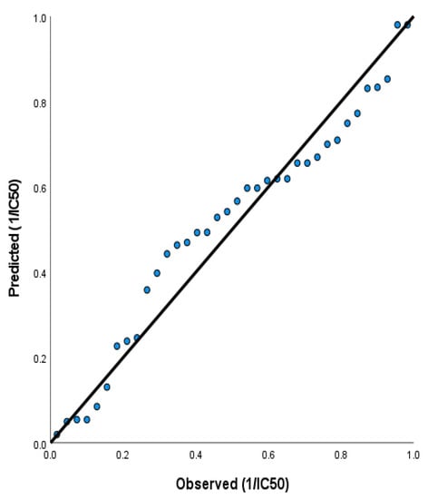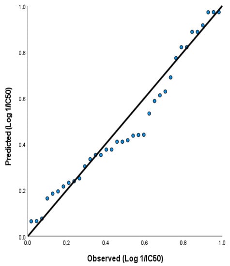 This study aimed to investigate the structure–activity relationship of selected heterocyclic compounds with promising anticancer activity by linking this biological activity to the computed quantum chemical reactivity descriptors and computed physicochemical parameters by establishing statistical models using multilinear regression (MRL). There is a universal concern regarding finding drugs for curing cancer, which is considered as one of the major causes of mortality worldwide []. Chemotherapy is one of the strategies in cancer treatment, where one or several drugs can be used in cancer treatment. Some chemotherapeutic drugs are organic compounds either of natural or synthetic origin. Synthetic heteroaromatic organic compounds that are cyclic compounds with at least two or more different heteroatoms such as N, O, and S have attracted numerous attention due to their wide applications in medicinal chemistry research [,,,,,,], which among the major pharmaceutical natural products and synthetic drugs have a distinct place because of their remarkable biological activities and established application in medicinal chemistry []. The sulfur atoms in these molecules provide great stability in the form of sulfide or disulfide linkages [].