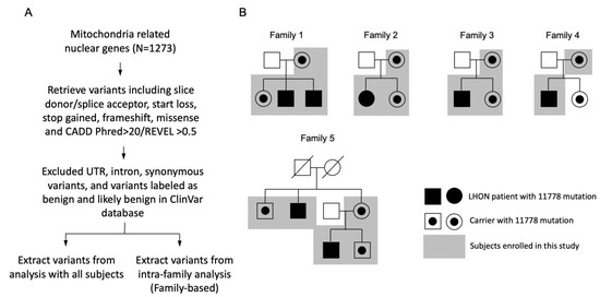 - Howell, N.; Mackey, D.A. Low-penetrance branches in matrilineal pedigrees with Leber hereditary optic neuropathy. Am. J. Hum. Genet. 1998, 63, 1220–1224. [Google Scholar] [CrossRef]