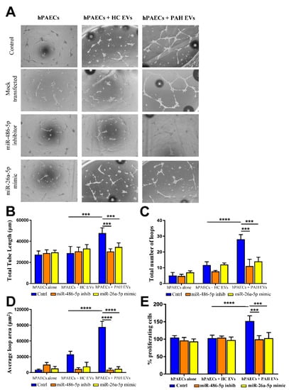 2.4. Effect of PAH EVs Derived miRs on hPAEC Tube Formation In Vitro