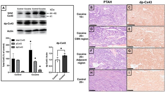 Wen, S.; Unuma, K.; Funakoshi, T.; Aki, T.; Uemura, K. Contraction Band Necrosis with Dephosphorylated Connexin 43 in Rat Myocardium after Daily Cocaine Administration. Int. J. Mol. Sci. 2022, 23, 11978. https://doi.org/10.3390/ijms231911978