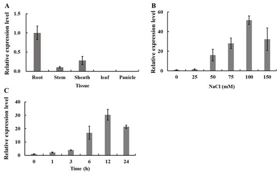 - Jadamba, C.; Kang, K.; Paek, N.C.; Lee, S.I.; Yoo, S.C. Overexpression of Rice Expansin7 (Osexpa7) Confers Enhanced Tolerance to Salt Stress in Rice. Int. J. Mol. Sci. 2020, 2, 454. [Google Scholar] [CrossRef] [PubMed]
