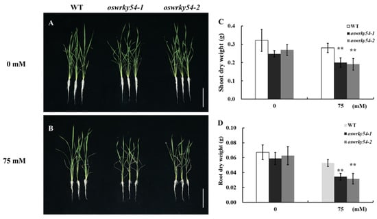 Chicago/Turabian StyleHuang, Jingjing, Fuhang Liu, Dong Chao, Boning Xin, Kui Liu, Shuling Cao, Xingxiang Chen, Liyun Peng, Baolei Zhang, Shan Fu, and et al. 2022. "The WRKY Transcription Factor OsWRKY54 Is Involved in Salt Tolerance in Rice" International Journal of Molecular Sciences 23, no. 19: 11999. https://doi.org/10.3390/ijms231911999