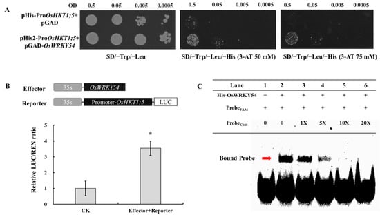 2.8. OsHKT1;5 Is a Direct Target of OsWRKY54