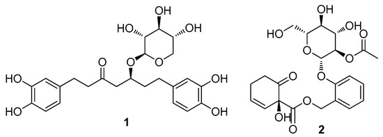 Chemical structure of oregonin (1) and 2′-O-acetylsalicortin (2).