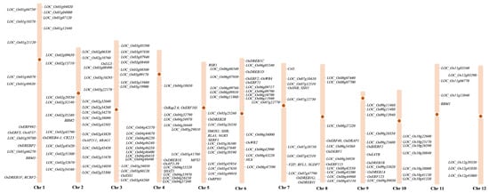The distribution of AP2/ERF genes on chromosomes in rice.