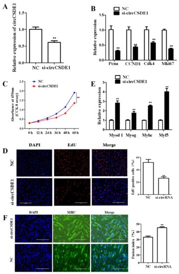 Sun D, An J, Cui Z, Li J, You Z, Lu C, Yang Y, Gao P, Guo X, Li B, et al. CircCSDE1 Regulates Proliferation and Differentiation of C2C12 Myoblasts by Sponging miR-21-3p. International Journal of Molecular Sciences. 2022; 23(19):12038. https://doi.org/10.3390/ijms231912038