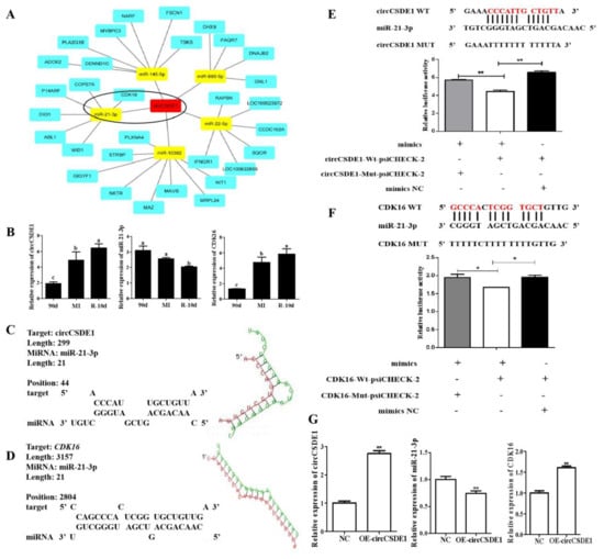 2.7. CircCSDE1 Acts as a ceRNA for miR-21-3p
