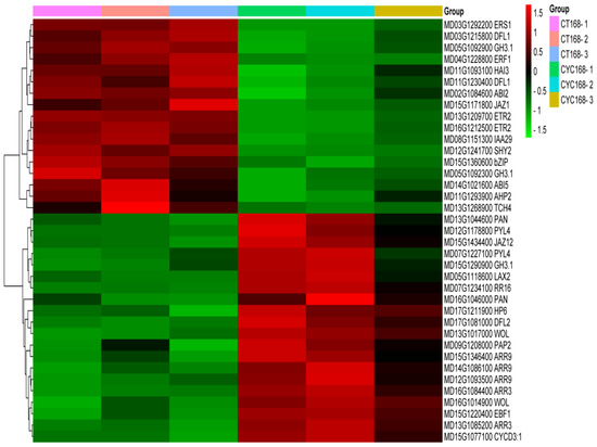 The heatmap of 37 genes involved in the plant hormone signal transduction pathway.