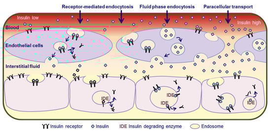 - Steil, G.M.; Ader, M.; Moore, D.M.; Rebrin, K.; Bergman, R.N. Transendothelial insulin transport is not saturable in vivo. No evidence for a receptor-mediated process. J. Clin. Investig. 1996, 97, 1497–1503. [Google Scholar] [CrossRef][Green Version]
