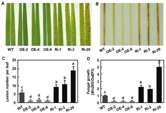 2.4. OsBIERF3 Positively Regulates Resistance to M. oryzae
