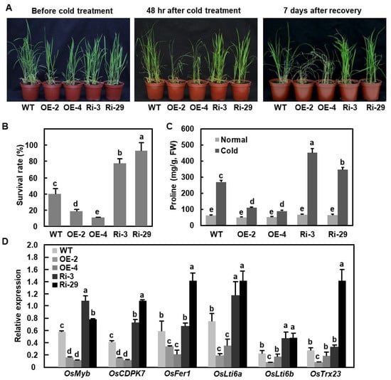 - Kim, S.H.; Kim, J.Y.; Kim, S.J.; An, K.S.; An, G.; Kim, S.R. Isolation of cold stress-responsive genes in the reproductive organs, and characterization of the OsLti6b gene from rice (Oryza sativa L.). Plant Cell Rep. 2007, 26, 1097–1110. [Google Scholar] [CrossRef]