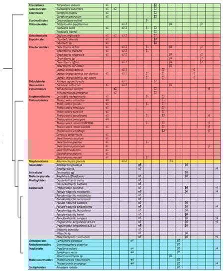 - Sato, S. Phylogeny of Araphid Diatoms Inferred from Morphological and Molecular Data. Ph.D. Thesis, Univiversity Bremen, Bremen, Germany, 2008. [Google Scholar]