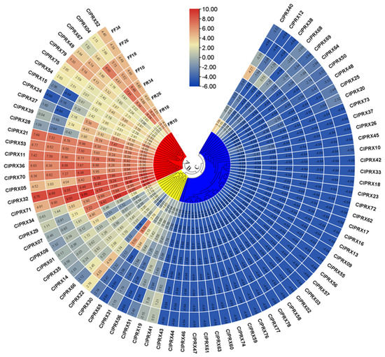 2.11. Expression Patterns of ClPRXs in Different Tissues