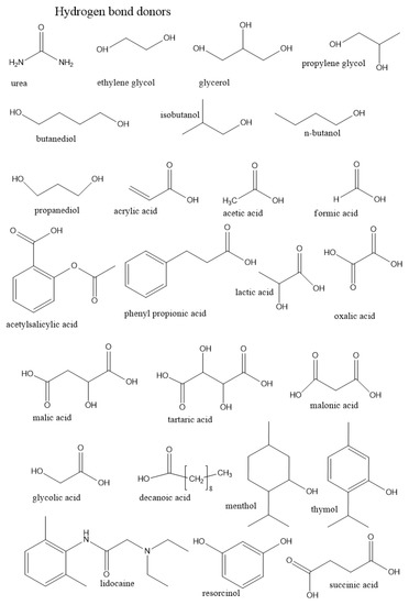 Chemical structures of H-bond donors of DESs discussed in this section.