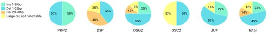 | DSP | 28 | A1 | c.329del2 | −2 | 75 |