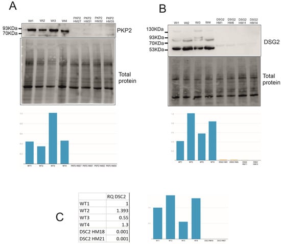 - Rasmussen, T.B.; Nissen, P.H.; Palmfeldt, J.; Gehmlich, K.; Dalager, S.; Jensen, U.B.; Kim, W.Y.; Heickendorff, L.; Mølgaard, H.; Jensen, H.K.; et al. Truncating Plakophilin-2 Mutations in Arrhythmogenic Cardiomyopathy Are Associated with Protein Haploinsufficiency in Both Myocardium and Epidermis. Circ. Cardiovasc. Genet. 2014, 7, 230–240. [Google Scholar] [CrossRef]