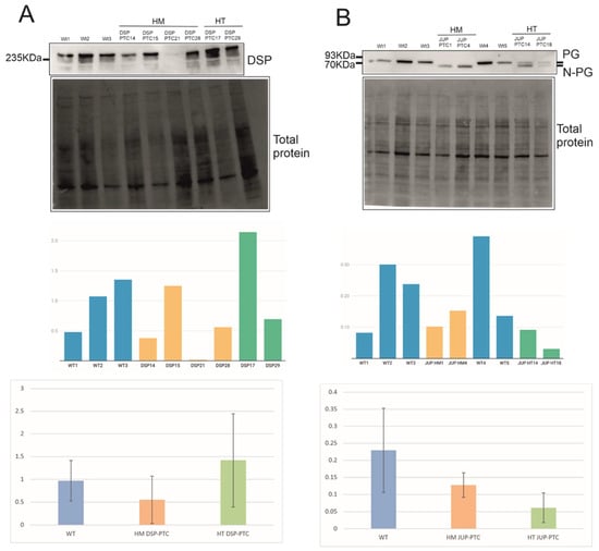 - Cabral, R.M.; Liu, L.; Hogan, C.; Dopping-Hepenstal, P.J.C.; Winik, B.C.; Asial, R.A.; Dobson, R.; Mein, C.A.; Baselaga, P.A.; Mellerio, J.E.; et al. Homozygous Mutations in the 5′ Region of the JUP Gene Result in Cutaneous Disease but Normal Heart Development in Children. J. Investig. Dermatol. 2010, 130, 1543–1550. [Google Scholar] [CrossRef] [PubMed]