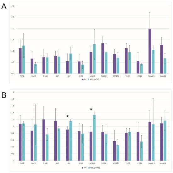 - Cheedipudi, S.M.; Hu, J.; Fan, S.; Yuan, P.; Karmouch, J.; Czernuszewicz, G.; Robertson, M.J.; Coarfa, C.; Hong, K.; Yao, Y.; et al. Exercise Restores Dysregulated Gene Expression in a Mouse Model of Arrhythmogenic Cardiomyopathy. Cardiovasc. Res. 2020, 116, 1199–1213. [Google Scholar] [CrossRef]