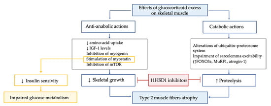 - Loerz, C.; Maser, E. The cortisol-activating enzyme 11β-hydroxysteroid dehydrogenase type 1 in skeletal muscle in the pathogenesis of the metabolic syndrome. J. Steroid. Biochem. Mol. Biol. 2017, 174, 65–71. [Google Scholar] [CrossRef]
