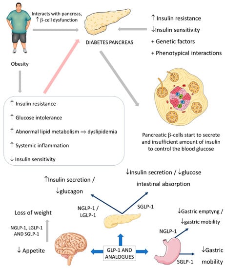 The insulin resistance environment is produced when an abnormal ectopic deposition of fat is observed mainly in the skeletal muscles and the liver. Furthermore, genetic factors and phenotypical interactions can increase metabolic diabetes risk and contribute to the residual β-cells that cannot adequately control insulin secretion in the right proportions to overcome the insulin resistance state [,,].