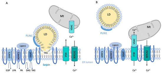 - Talukder, M.U.; Sim, M.F.M.; O’Rahilly, S.; Edwardson, J.M.; Rochford, J.J. Seipin oligomers can interact directly with AGPAT2 and lipin 1, physically scaffolding critical regulators of adipogenesis. Mol. Metab. 2015, 4, 199–209. [Google Scholar] [CrossRef]