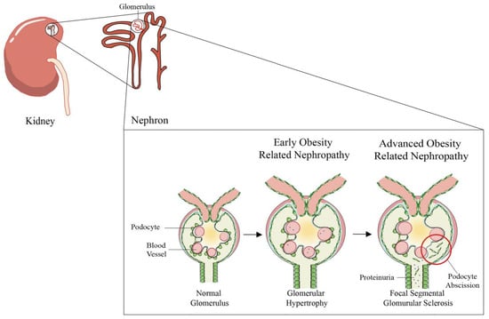- D’Agati, V.D.; Chagnac, A.; de Vries, A.P.J.; Levi, M.; Porrini, E.; Herman-Edelstein, M.; Praga, M. Obesity-related glomerulopathy: Clinical and pathologic characteristics and pathogenesis. Nat. Rev. Nephrol. 2016, 12, 453–471. [Google Scholar] [CrossRef]