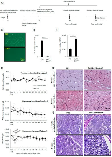 2.2. The Maximum Intrasciatic Injectable Dose of AAV1-rP0-mASC Is Not Associated with Neurotoxicity in Naïve Immunocompetent Mice