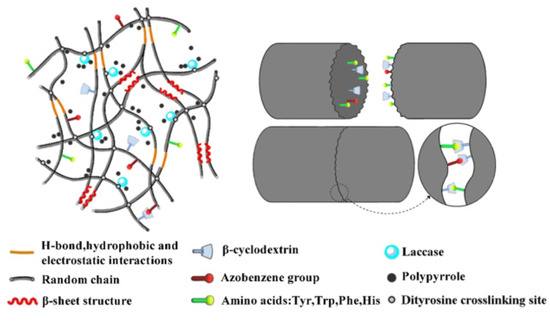 - Liu, L.; Han, Y.; Lv, S. Design of Self-Healing and Electrically Conductive Silk Fibroin-Based Hydrogels. ACS Appl. Mater. Interfaces 2019, 11, 20394–20403. [Google Scholar] [CrossRef]