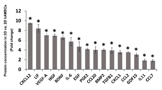 2.3. Spheroid Formation of hAMSCs Induced Changes in Methylation Status and Increased the Production of Bioactive Factors