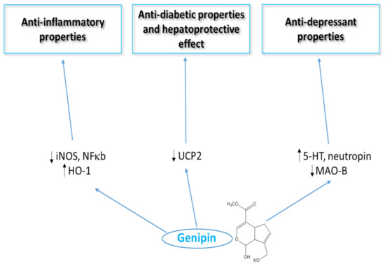 More information on the pharmacological actions of genipin for the treatment of neurodegenerative diseases of the central nervous system, including Alzheimer’s disease and Parkinson’s disease, and its anti-depressive activity is given in a review by Li et al. [2].