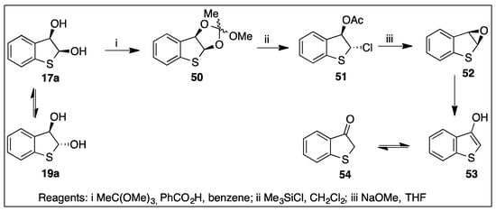 The thiophene ring cis-dihydrodiols (17a,c,d) and trans- dihydrodiol epimers (19a, 19d) are much more stable than the fused benzene ring cis-dihydrodiols (11a-c). This later led to the use of dihydrodiols 17a/19a in the first synthesis of a thiophene epoxide (Section 5.4) [].