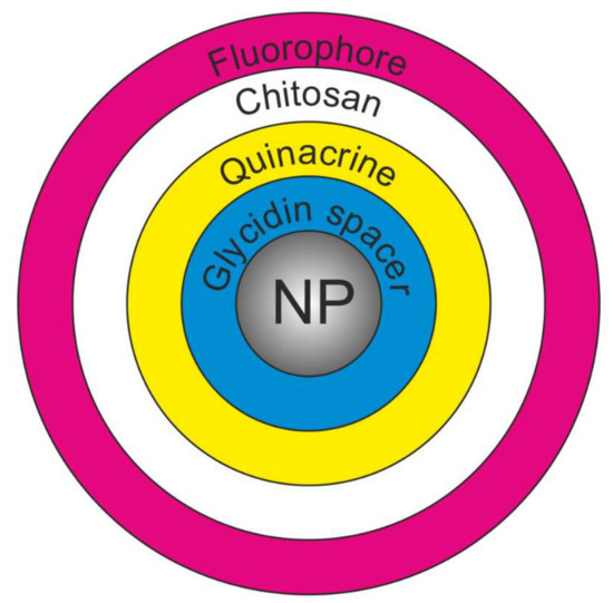For covalent immobilization of quinacrine, the surfaces of nanoparticles were modified with (3-glycidyloxypropyl)trimethoxysilane according to the diagram shown in Figure 3.