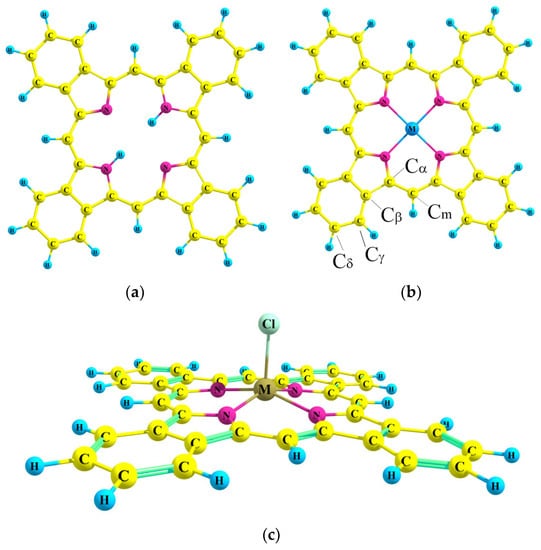 - Eroshin, A.V.; Otlyotov, A.A.; Zhabanov, Y.A.; Veretennikov, V.V.; Islyaikin, M.K. Complexes of ca(Ii), ni(ii) and zn(ii) with hemi-and dicarbahemiporphyrazines: Molecular structure and features of metal-ligand bonding. Macroheterocycles 2021, 14, 119–129. [Google Scholar] [CrossRef]