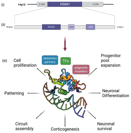 - Hou, P.-S.; hAilín, D.Ó.; Vogel, T.; Hanashima, C. Transcription and Beyond: Delineating FOXG1 Function in Cortical Development and Disorders. Front. Cell. Neurosci. 2020, 14, 35. [Google Scholar] [CrossRef] [PubMed]