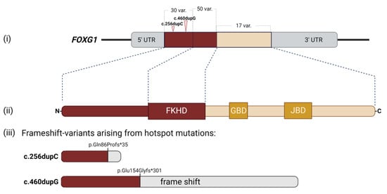 - Dai, S.; Li, J.; Zhang, H.; Chen, X.; Guo, M.; Chen, Z.; Chen, Y. Structural Basis for DNA Recognition by FOXG1 and the Characterization of Disease-Causing FOXG1 Mutations. J. Mol. Biol. 2020, 432, 6146–6156. [Google Scholar] [CrossRef]