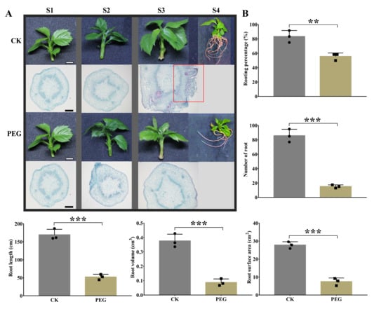 2.1. Morphological and Anatomical Changes by PEG Treatment during AR Formation