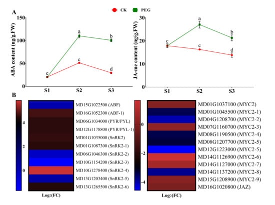 2.4.2. Measurement of ABA and JA-me and Analysis of Related DEGs