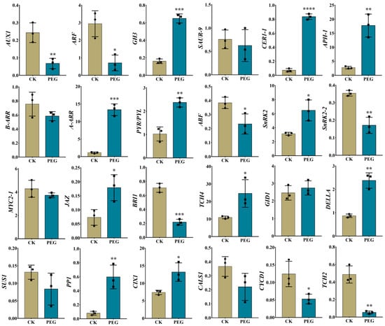 3.4. PEG Inhibited ARs by Repressing Root Development and Cell Cycle-Related Genes