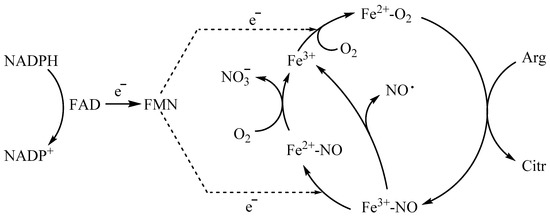 - Stuehr, D.J.; Haque, M.M. Nitric oxide synthase enzymology in the 20 years after the Nobel Prize. Br. J. Pharmacol. 2019, 176, 177–188. [Google Scholar] [CrossRef] [PubMed]