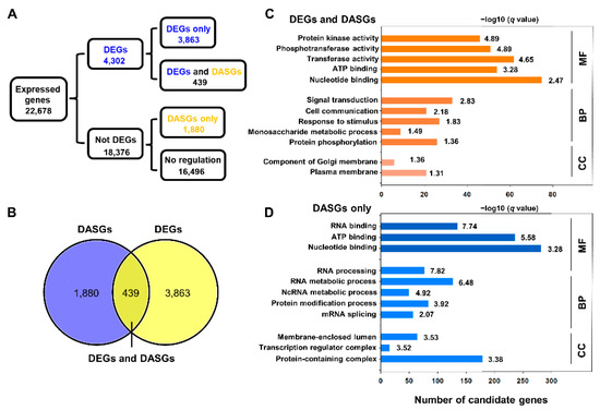 2.5. Comparative Analysis of DEGs and DASGs in Response to Cold Stress