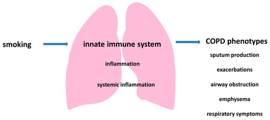 Thus, the pathogenesis of COPD involves different cells of the innate immune system, which leads to the development of local and systemic inflammation and may be associated with some clinical characteristics of the disease (Figure 3).