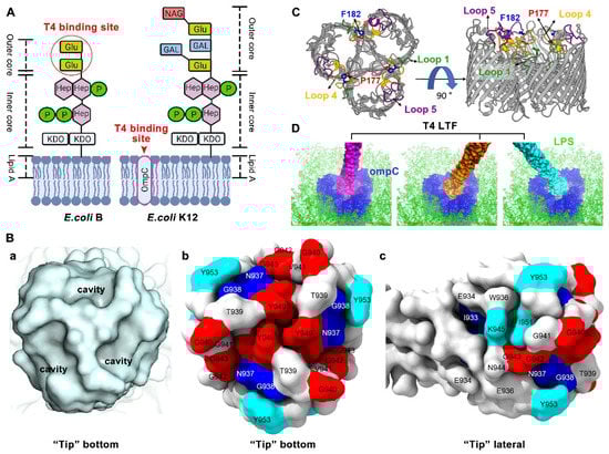 2.2. Molecular and Structural Insight of T4 LTFs’ Interaction with Host Receptors LPS and OmpC
