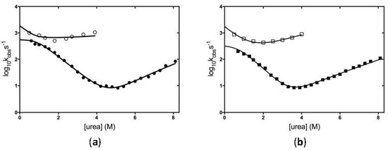 30. Parker, M.J.; Spencer, J.; Clarke, A.R. An Integrated Kinetic Analysis of Intermediates and Transition States in Protein Folding Reactions. J. Mol. Biol. 1995, 253, 771–786. [Google Scholar] [CrossRef]