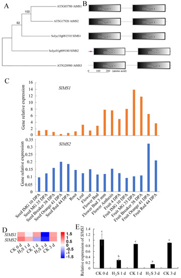 2.2. Expression Patterns of Tomato MS Gene in Different Tissues of Tomato Plants and in Response to Hydrogen Sulfide Treatment
